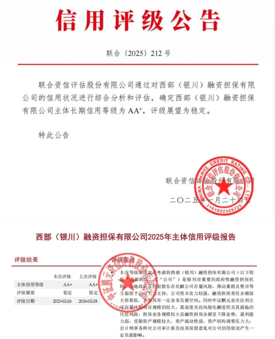 西部(銀川)融資擔保有限公司是經銀川市委、政府批準并出資設立的以擔保為主業的專業金融服務機構,于2014年7月正式掛牌成立,注冊資本45.87億元,是AA+級擔保機構,為中國銀行間市場交易商協會會員單位,中國融資擔保業協會副會長單位,累計七次蟬聯國內金融領域最權威的《金融時報》“金龍獎,累計四年榮獲“自治區金融服務創新獎,憑借創新優勢、規模優勢、品牌優勢躋身國內擔保行業前列,成為國內具有核心競爭力和品牌影響力的擔保機構。